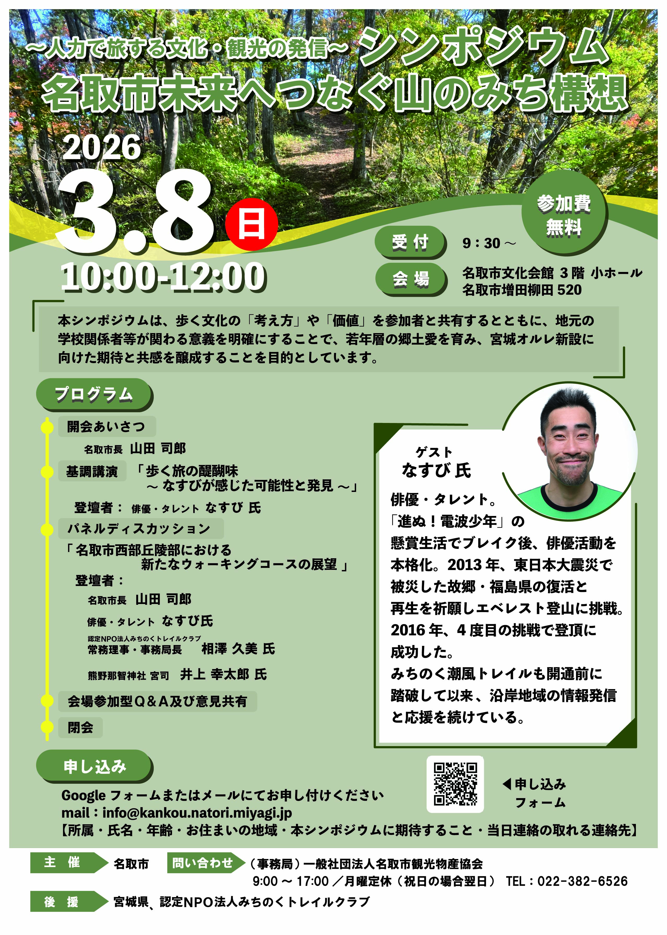 【シンポジウム】~一人力で旅する文化・観光の発信~名取市未来へつなぐ山のみち構想