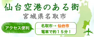 宮城県南部に位置する名取市は、東北最大の国際空港となる仙台空港がありアクセスにとても便利な街です。