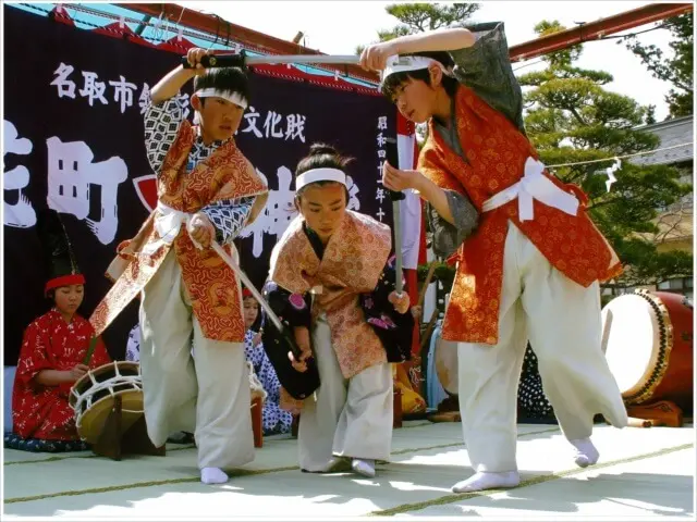 演舞のはじめに神降ろしの祝詞が唱えられ、沈黙の中での祈祷の舞が繰り広げられる厳かな神楽です。