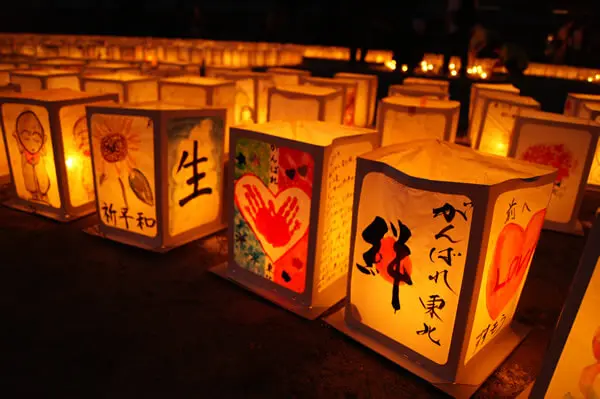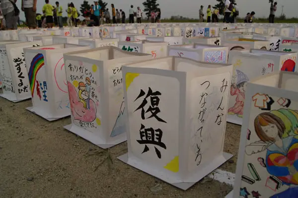 3月の追悼セレモニーで灯される絵灯篭を制作します。