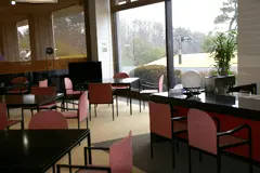 大きな天窓から柔らかな自然光が差し込むクラブハウス。
