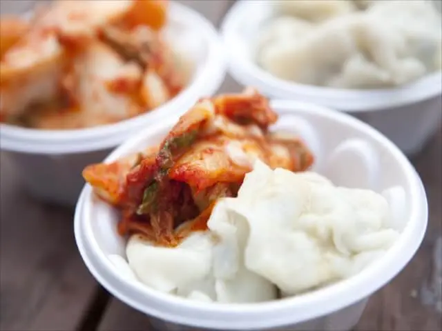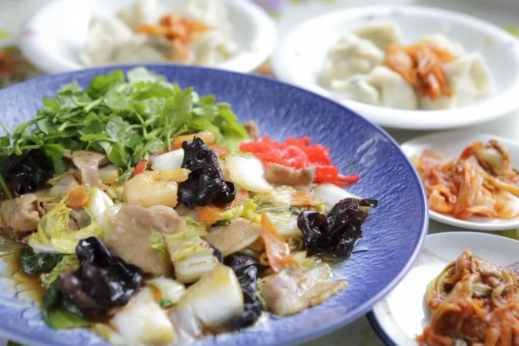 元祖ゆりあげ水餃子という、水餃子の上にキムチを載せた水餃子が大人気です。