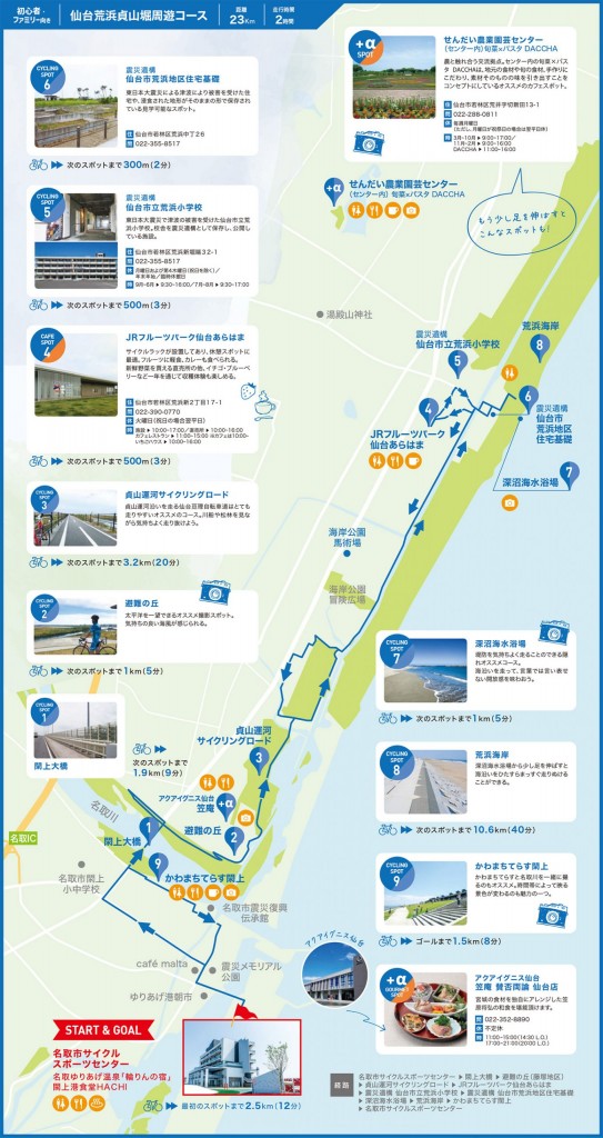 名取市サイクルスポーツセンターが主催するサイクルプログラムで、インストラクターがついて市内を案内しながらサイクリングを楽しめるツアーです。